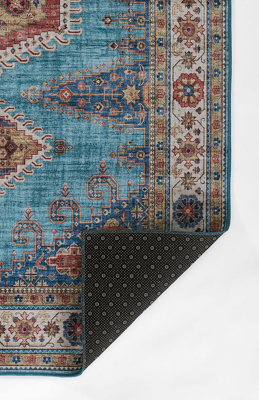 Karachi 10 Blue Non-Slip Washable Rug