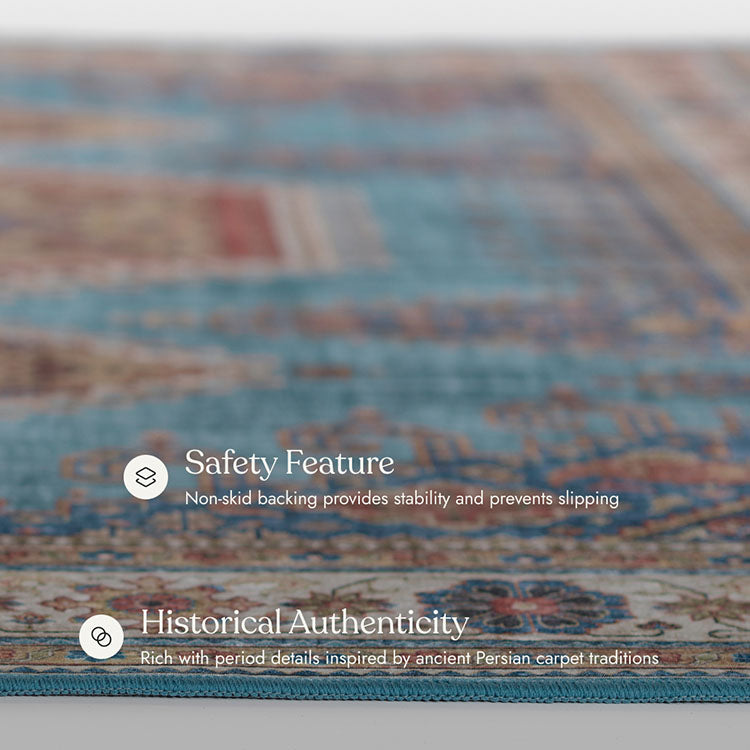 Machine-washable Persian rugs with built-in non-slip backing. No rug pad needed. Ultra-low pile, zero shedding. Perfect for entryways, dining rooms & more.